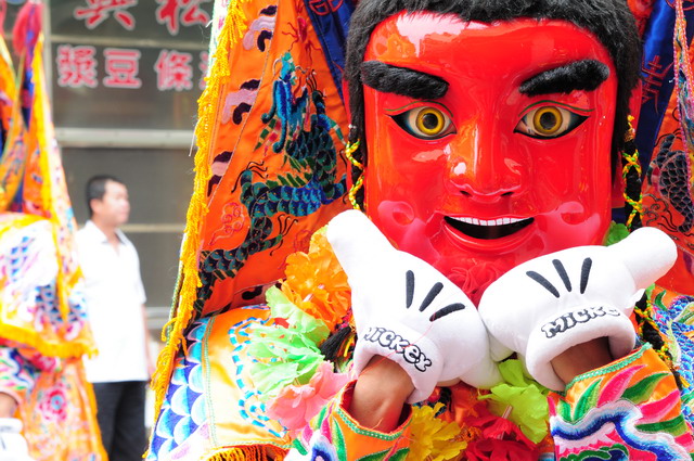 當大家七嘴八舌讚賞小妹妹古錐、可愛之時,我又聽說在縣政府上班的大哥今天也有分配的勤務要執行。原來,這個廟會活動龐大、節目繁多,需要大量的人力參與,除了縣政府全力動員所有的警力、公務員、老師來維護公共秩序、安全之外,家家戶戶還會自動自發地向自己所屬的境主處報到,尋求參與各項表演任務或陣頭的演出,每一位參與人員放下手邊的工作,貢獻自己的時間,在陣頭中找尋自己適合的位置來幫忙。依我看,這「迎城隍」可以說已到了人人參與、家家傾力相挺的境界,也只有長久習慣了戰地政務、人人皆兵的金門鄉親才有這種犧牲奉獻的精神!