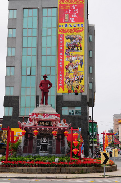 才驚訝金門鄉親是如此的具社區意識、團隊精神之時,突然間陣陣鑼鼓喧天、鞭炮聲如雷轟頂,只見不遠的大街上人聲喧嘩、旌旗飄揚、煙硝遮天,我還以為城隍爺提早出巡了。一問才知,今年縣政府及金城鎮公所為擴大慶祝,除了本地的陣頭之外還邀請了台灣廿七家宮廟,捌佰多名信眾跨海而來共襄盛舉,同時也邀請了大陸的十五家宮廟,四佰餘人一齊來逗熱鬧。自上午十時起,來自台灣宮廟的陣頭就先行遶境巡安,為下午才要登場的重頭大戲先行暖場,為年度慶典揭開序幕!