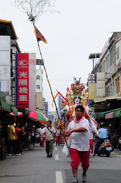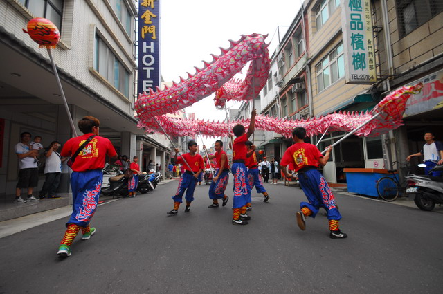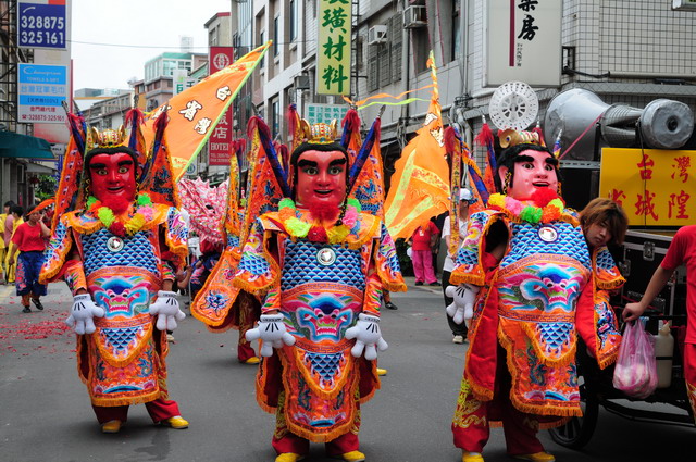 上午,來自台灣的陣頭先行遶境,為下午登場的重頭大戲先行暖場。