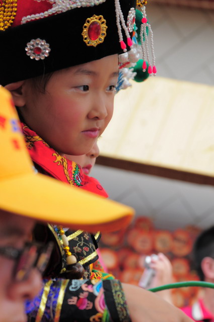 花車上的一位扮演清宮劇裡「格格」的小女孩。