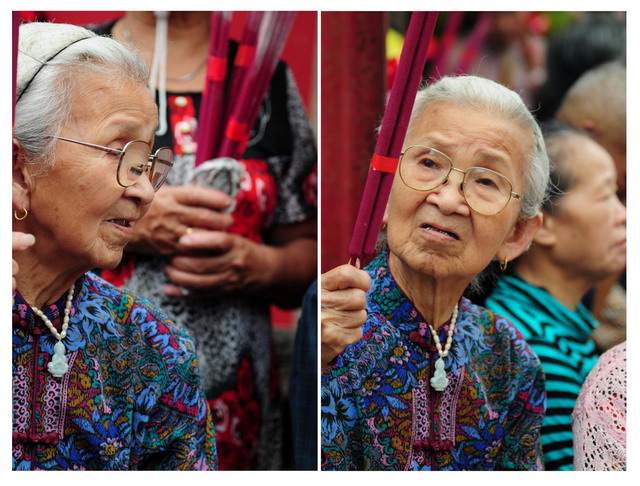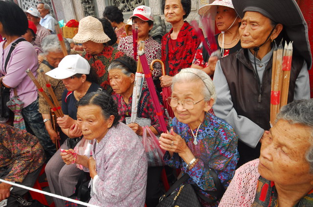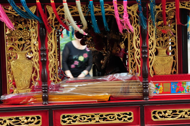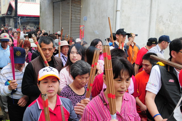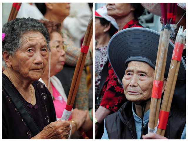 隊伍的最後是一大群的香客,男女老少都有,拿著點燃的香,虔誠的跟著城隍爺神駕,他們說這樣可以獲得庇佑。