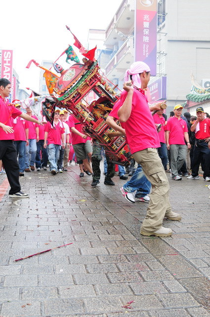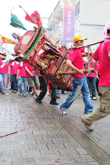 這是一例,從抬輦的壯漢直眼看我,及接著一連串的搖擺晃動的動作,我都拍了下來。