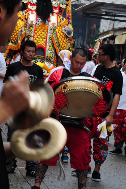 在長鏡頭下,我注意到了這位全身上下滿是刺青,卻又很認真擊鼓的少年郎,他專注的樣子不免令我想到幾個月前才下片的電影《陣頭》。