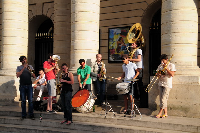 白天,一群年青業餘的音樂家在奧德翁劇院前廣場作了精彩的即興演湊。